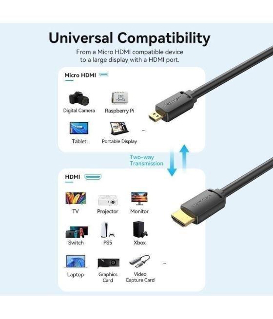 Cable 2.0 4k hdmi/m a micro hdmi/m 2 m awg34 negro vention