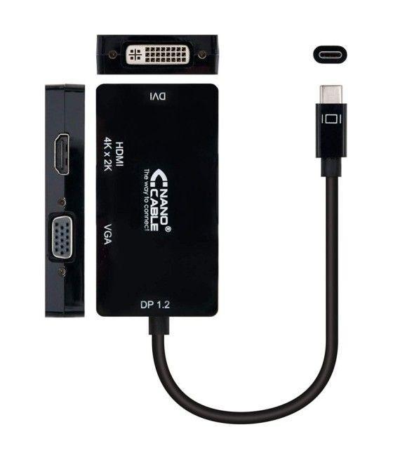 NANO CABLE - Conversor nanocable 10.16.4301-bk/ usb tipo-c macho - vga hembra/ dvi hembra/ hdmi hembra/ 10cm/ negro