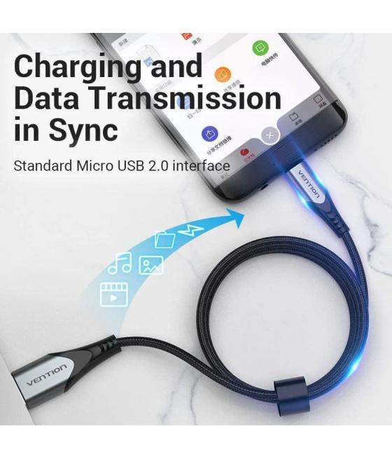 VENTION - Cable usb 2.0 vention collf/ usb macho - microusb macho/ hasta 60w/ 480mbps/ 1m/ azul