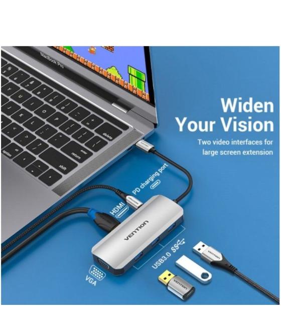 VENTION - Docking usb tipo-c vention toihb/ 1xhdmi 4k/ 1xvga/ 3xusb/ 1xusb tipo-c pd/ gris