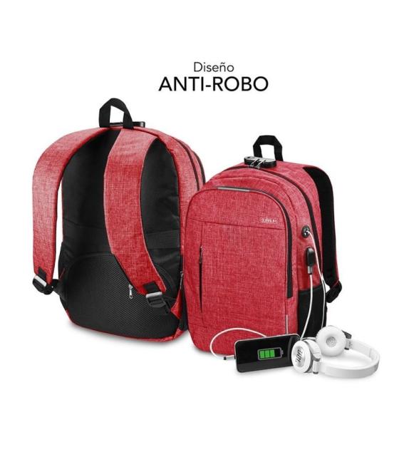 SUBBLIM - Mochila subblim urban lock para portátiles hasta 16'/ puerto usb/ antirrobo/ roja