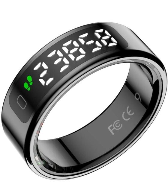 LEOTEC - Anillo inteligente leotec kör mau smart ring talla 8/ ø18.3mm/ notificaciones/ frecuencia cardíaca/ negro