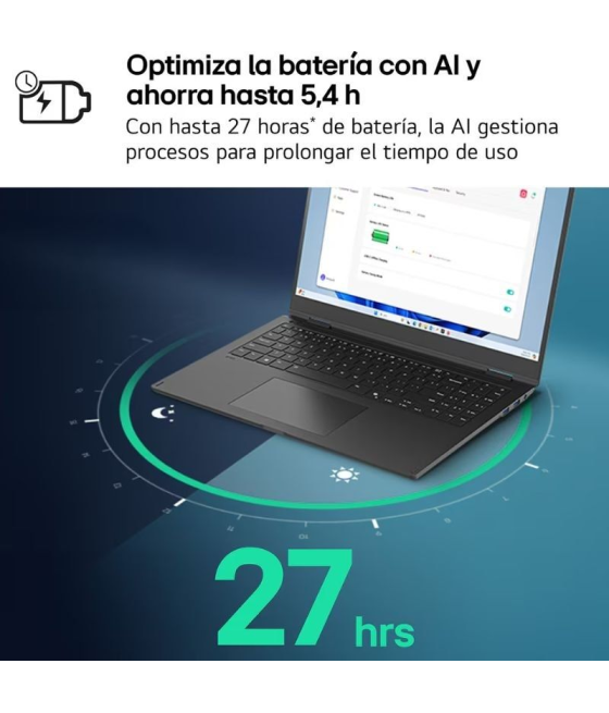 LG - Portátil lg gram 15zd80t-g.ax55b ryzen ai 5-340/ 16gb/ 512gb ssd/ 15.6'/ sin sistema operativo