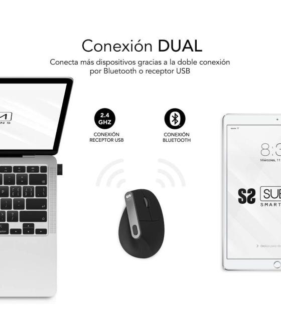 SUBBLIM - Ratón ergonómico inalámbrico por bluetooth/ 2.4ghz subblim nature vertical ergo dual battery/ batería recargable/...