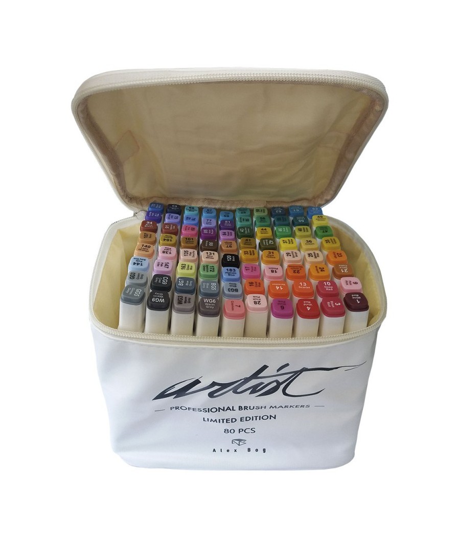 Alex bog rotuladores canvas luxe professional brush market doble punta biselada/pincel c/surtidos estuche 80 ud