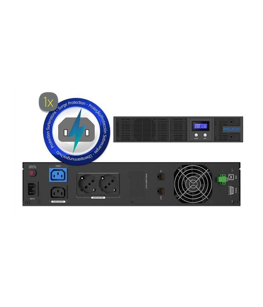 La pantalla LCD proporciona información en tiempo real sobre las mediciones de tensión en la entrada y la salida del SAI, así como información sobre el tiempo de autonomía o la capacidad actual de carga de las baterías entre otros datos relevantes.
